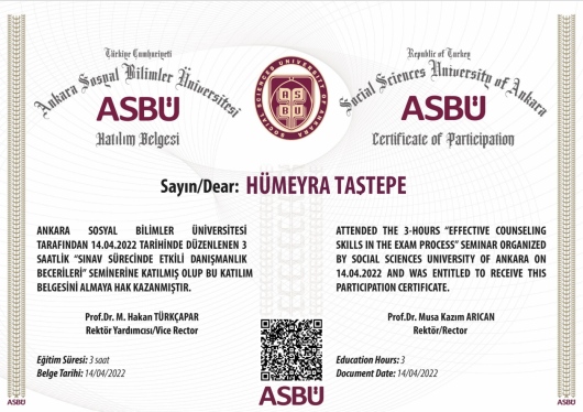 - Doğu Akdeniz Üniversitesi Psikoloji Lisans (KKTC, 2021)